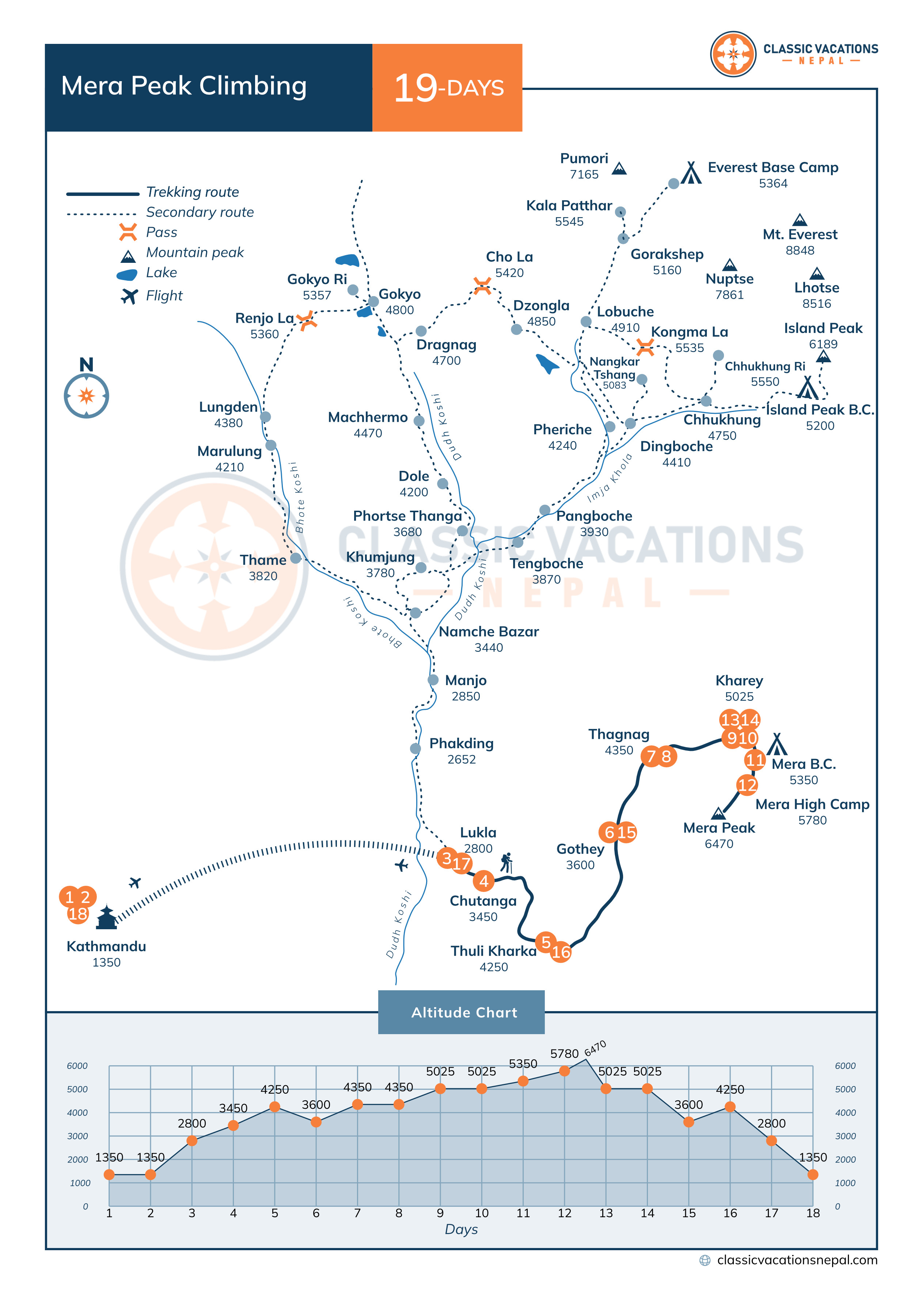 While the standard Mera Peak Climb itinerary is included in this package, we understand that individual preferences may vary. So, if you wish to customize this climb itinerary or package according to your own preferences, don't hesitate to reach out to us. Whether you would like a shorter duration for the trek, want to modify the trek route, or have specific preferences regarding the services offered, feel free to email us at chet@classicvacationsnepal.com Or WhatsApp us at +9779851040806